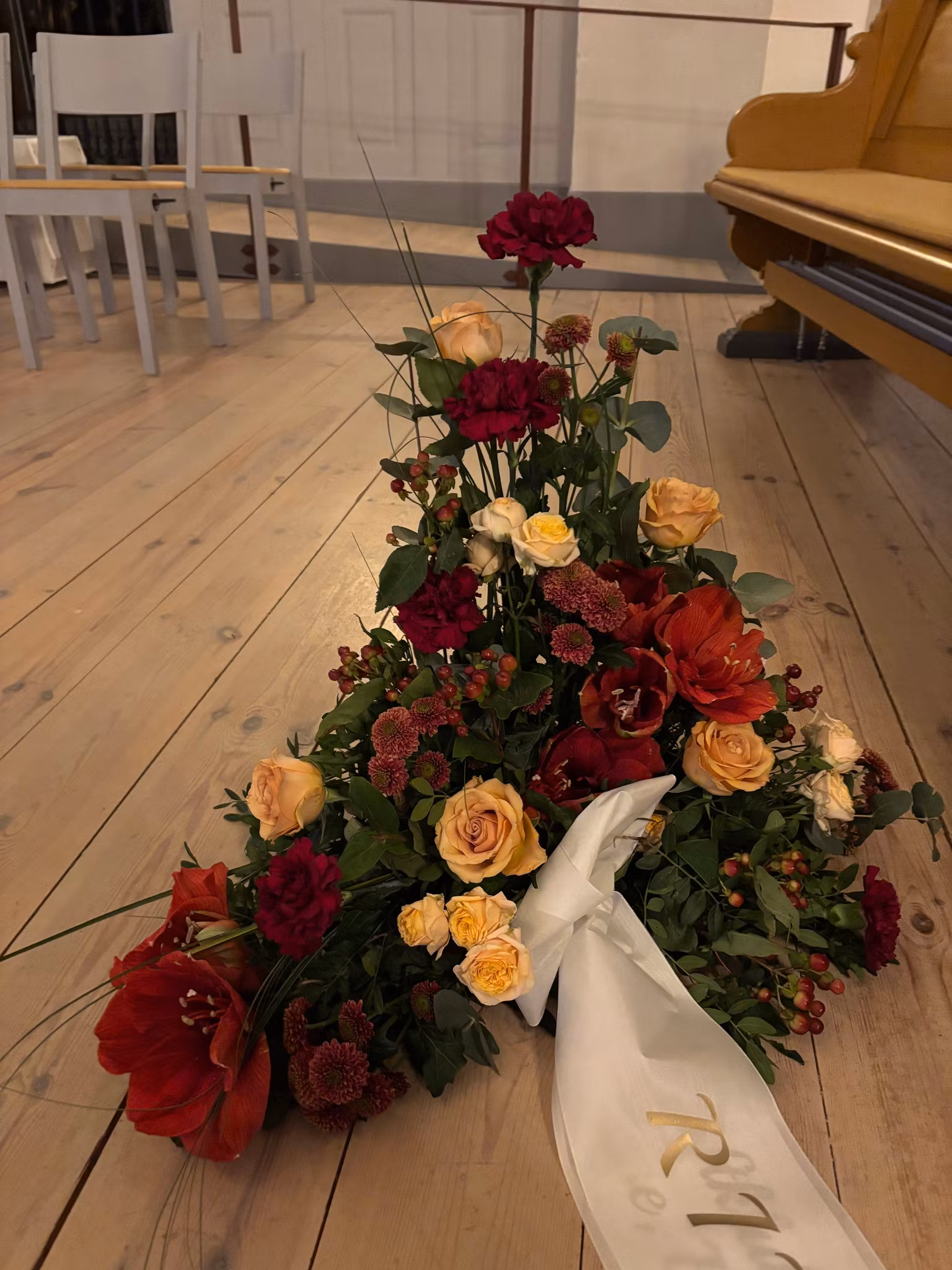 Köp till ett band(295kr) annars ingår det ett kort till dekorationen: https://floravingaker.se/begravningsdekoration/begravningsband